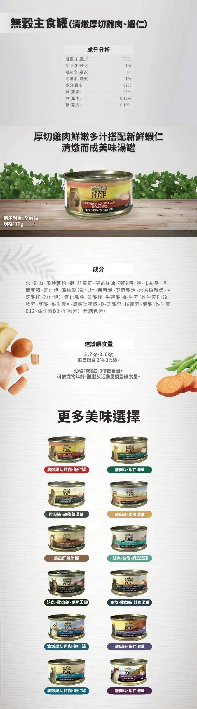 首頁 > 傻爸商城 > 無穀貓主食罐|清燉厚切雞肉、蝦仁70g