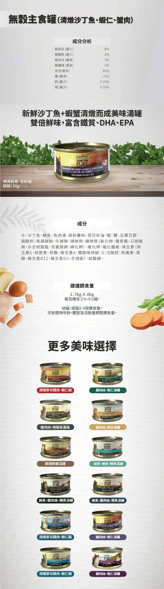 無穀貓主食罐|清燉沙丁魚、蝦仁、蟹肉70g