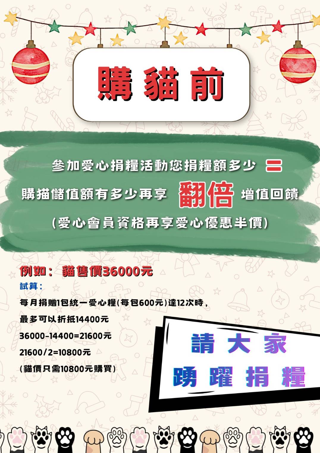 可累計至12次再折抵猫價金再享愛心 半價作為回饋您的愛心⋯